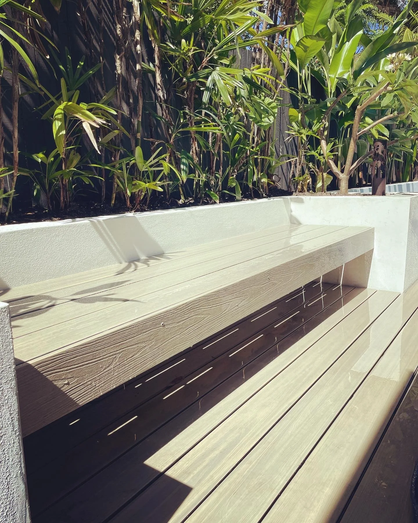 We designed and built a modern composite decking seating area, creating a stylish and low-maintenance outdoor space perfect for relaxing and entertaining.